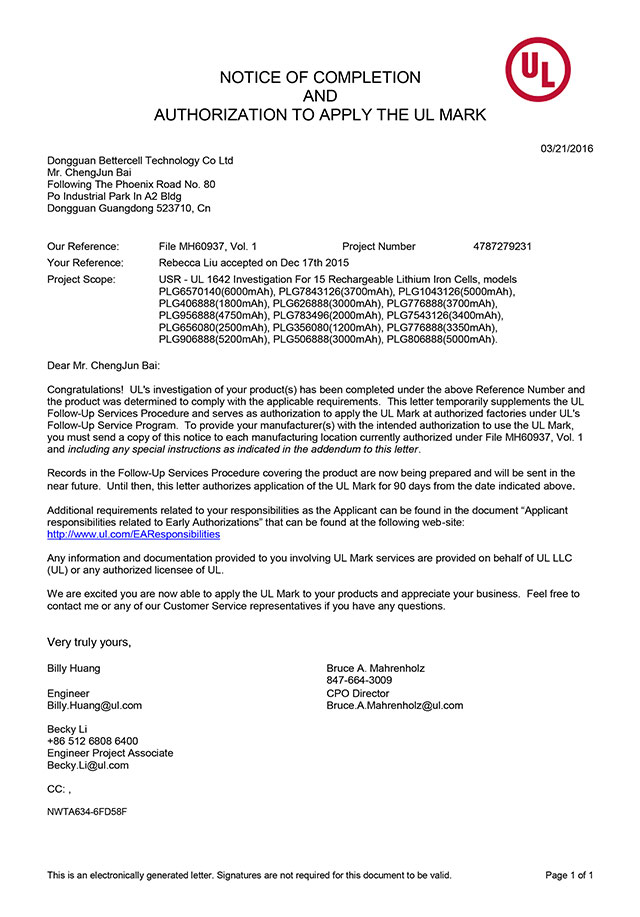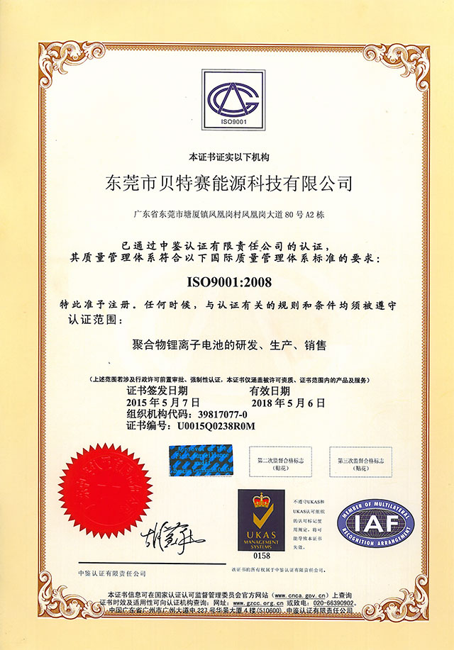 公司通过并施行ISO9001质量管理体系认证 ,产品通过3C 、UL 、IEC 、FCC 、CE 、 PSE 、KC 、UN38 . 3等权威认证 。 公司注重“以人为本 、 人尽其才 ”的用人理念, 以员工与企业一起成长为使命, 努力实现和谐共赢, 共同发 展的最终目标 ,共创美好未来!